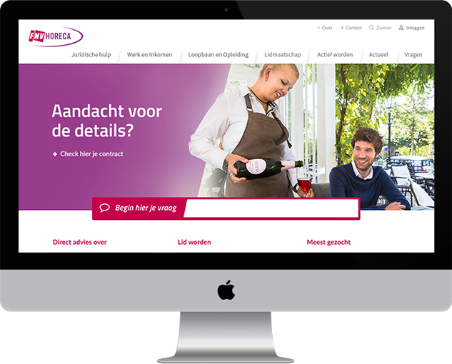 De FNV Horecabond, waaronder FNV Horeca, FNV Catering en FNV Recreatie vallen, hebben ons gevraagd om voor de drie sectoren en voor de overkoepelende bond een nieuwe website neer te zetten. De bestaande website was behoorlijk verouderd en de sectoren en de bond waren online toe aan een nieuw gezicht.